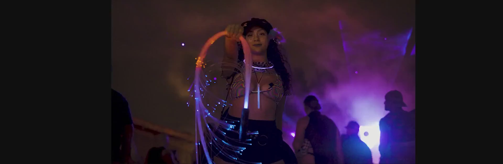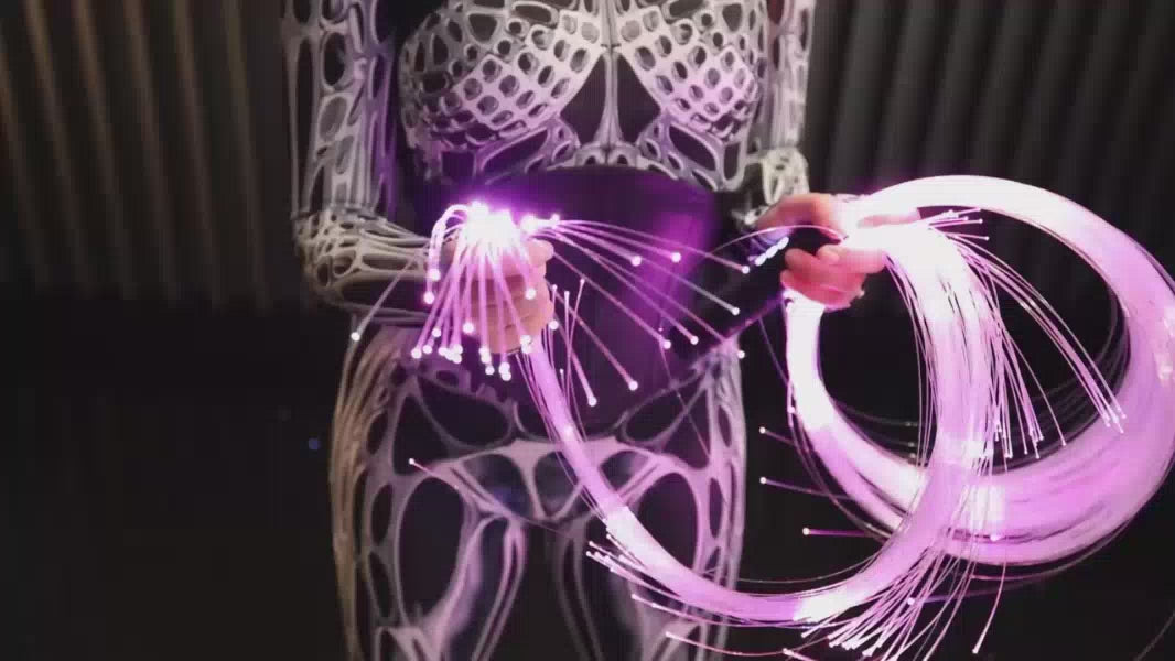 Premium app-controlled fiber optic whip for flow arts and light shows — unlimited modes, durable silicone grip, and 7-hour rechargeable runtime.